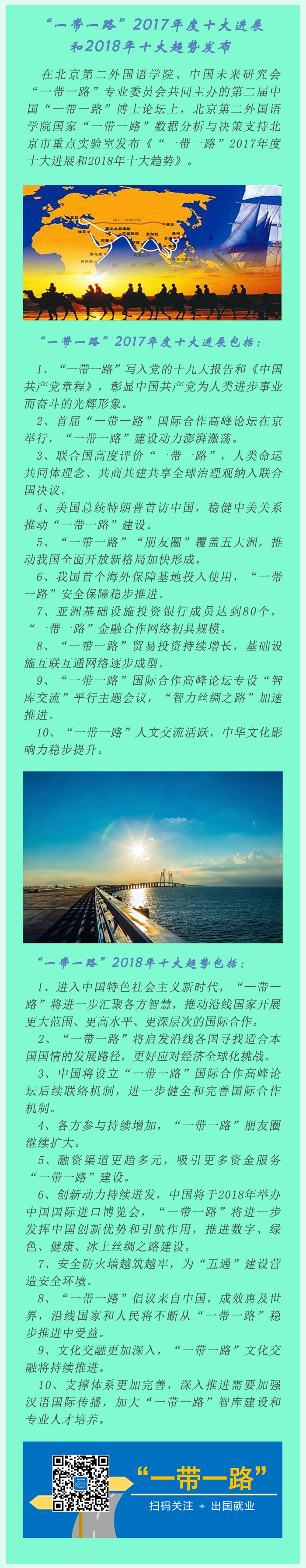 在北京第二外國語學院、中國未來研究會“一帶一路”專業(yè)委員會共同主辦的第二屆中國“一帶一路”博士論壇上,北京第二外國語學院國家“一帶一路”數據分析與決策支持北京市重點實驗室發(fā)布《“一帶一路”2017年度十大進展和2018年十大趨勢》。